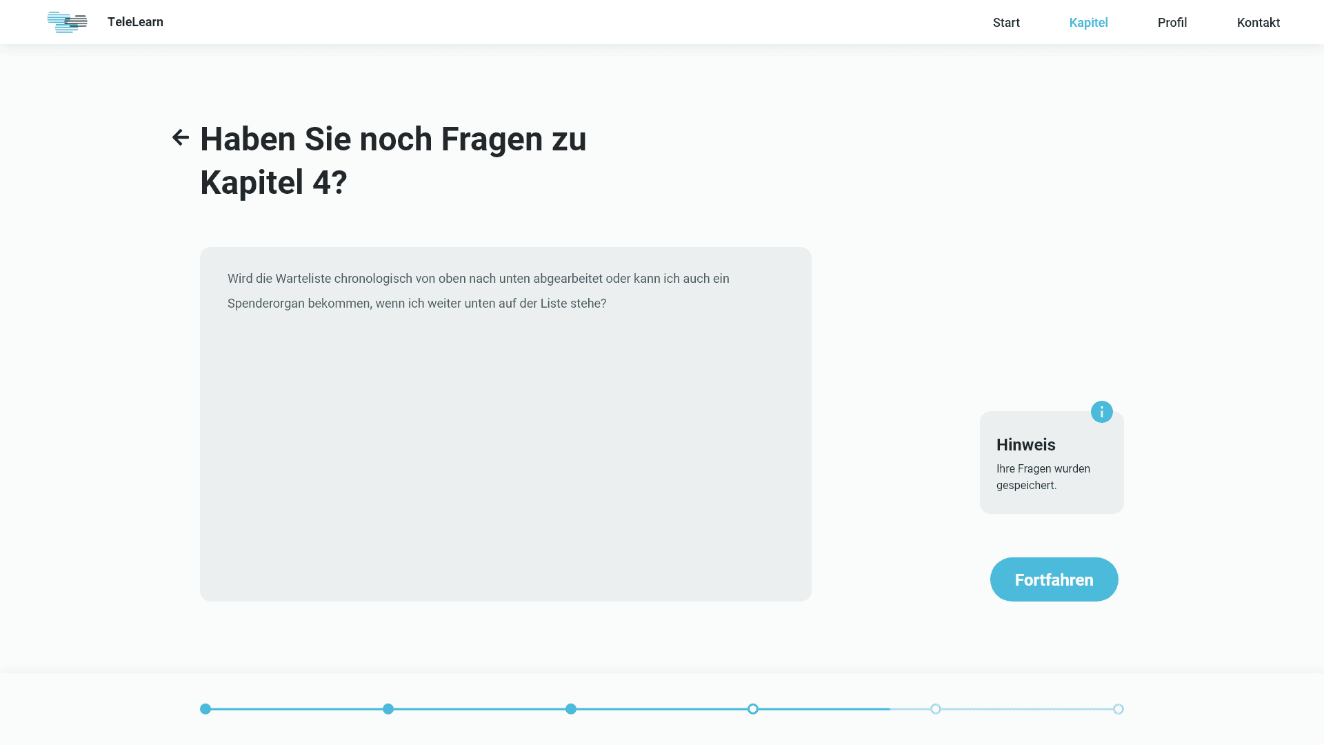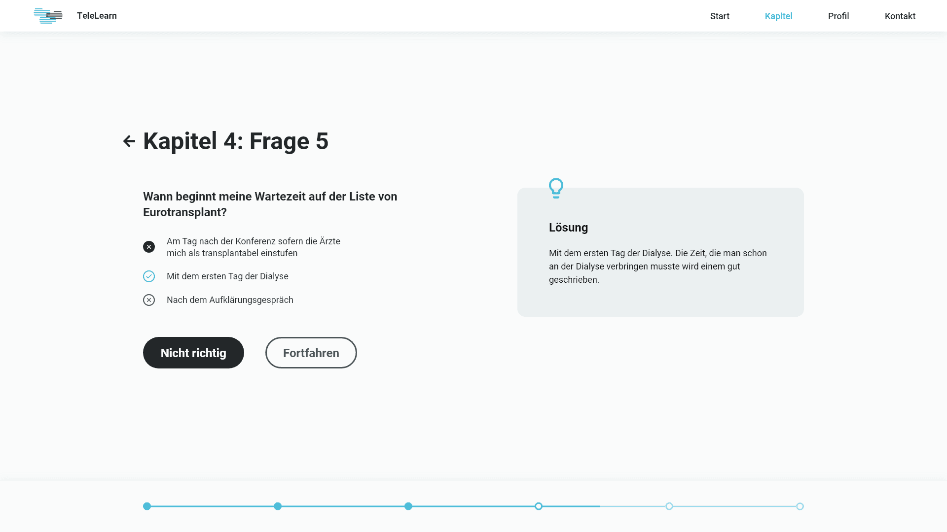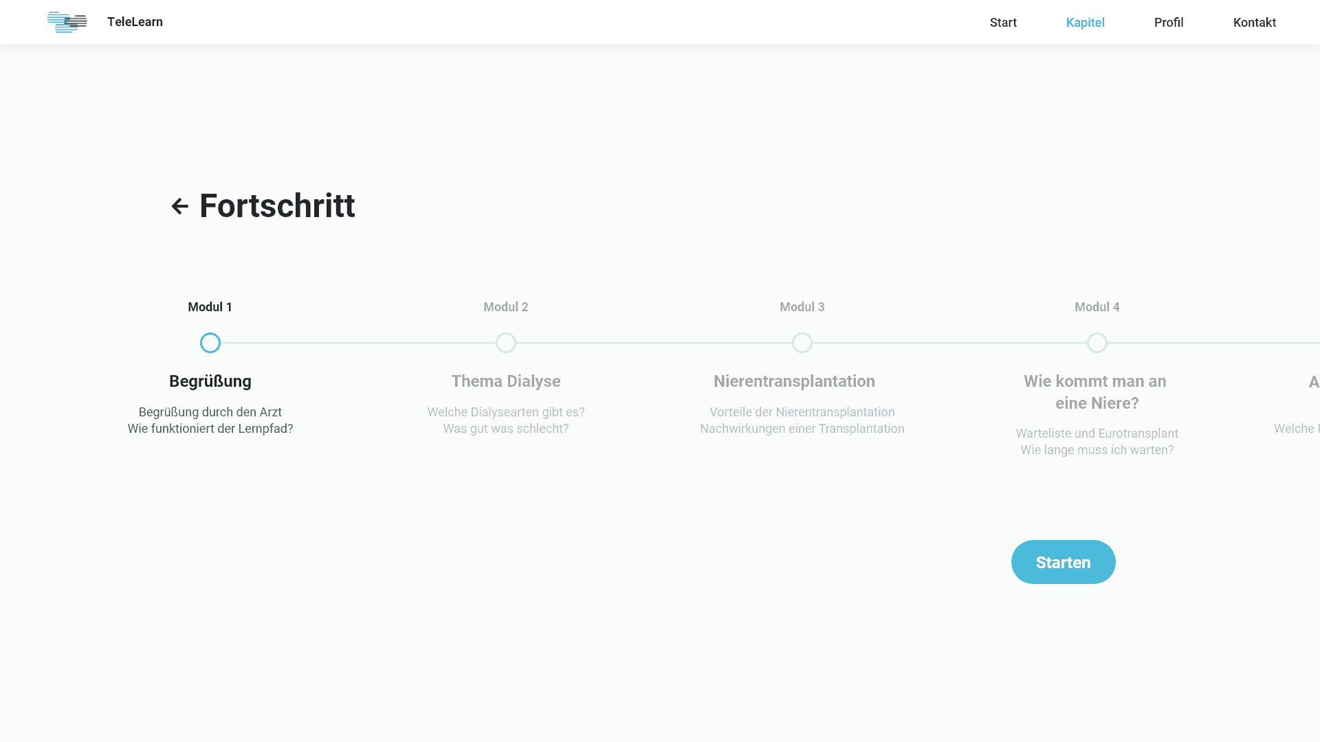 The project was about designing a learning platform to educate users about kidney transplantation in cooperation with Tübingen University Hospital. The main goal was to help dialysis patients prepare for their initial transplant consultation, while also reducing the informational workload for healthcare providers.